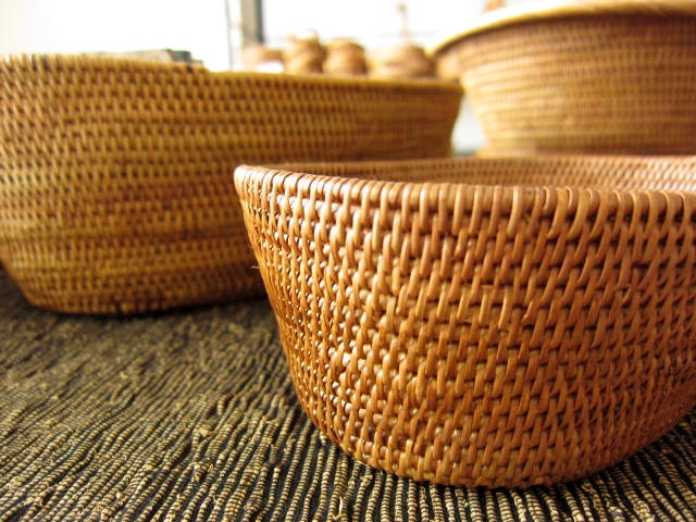 バリ島のカフェやレストランなどで、パンやフルーツなどを取り分けるためのバスケットとして使われているのよく見かけます。