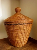 レトロな雰囲気漂う、ふた付きのつぼ型バスケットです。