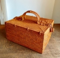 蓋が観音開きタイプで持ち手の付いたピクニックバスケット兼収納ボックスです。