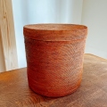 アタ製のふたの付いた筒型のランドリーボックスです。