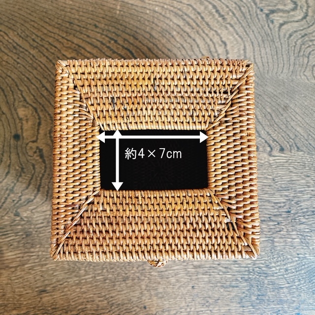 海外のホテルなどで見かける立方体型のティッシュが入るイメージでバリ島のアタ工房に作ってもらいました。