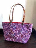 バティックチャップ(型押し染めバティック)の生地で作られたミニトートです。