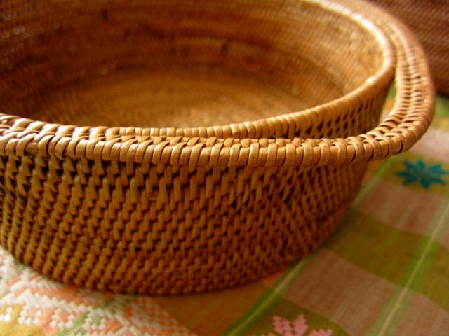 煮込み料理などに使うキャセロール鍋のように、両側に持ち手の付いたアタ製バスケットです。