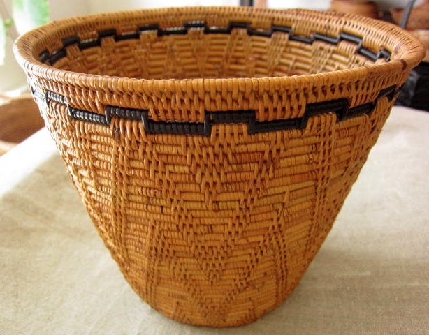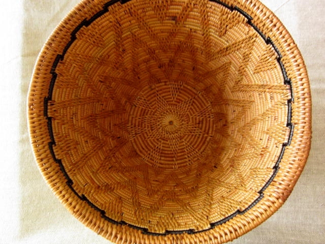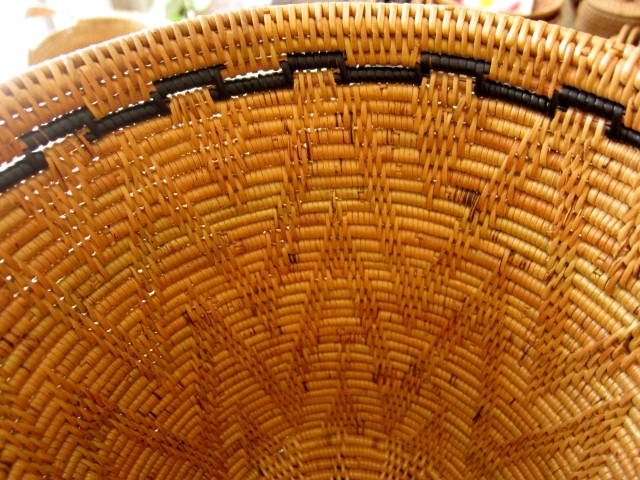 模様が編み込まれたアタ製スモールバスケットです。