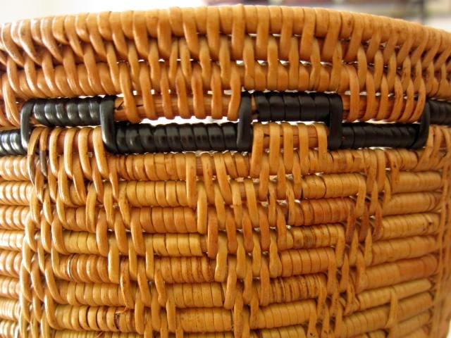 亜熱帯性のシダ科の植物「アタ」の茎を細く割いて細かく編み込み、天日干しとココナッツチップで燻す作業を何日も繰り返してようやく完成するアタ製品。 燻されることによって、防虫・防カビ効果も高まると言われています。 尚、アタ製品には、燻し工程による独特な香りがございますが、お使いいただくうちにだんだんと香りは薄らいでまいります。