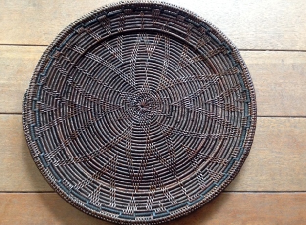 アタで細かく編み込まれたラウンド(円型)トレイです。