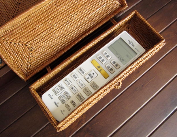 シンプルなプレーン編みに熟練した職人技が光るスリムサイズのふた付きカトラリーケースです。