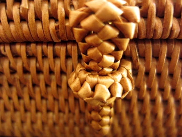 亜熱帯性のシダ科の植物「アタ」の茎を細く割いて細かく編み込み、天日干しとココナッツチップで燻す作業を何日も繰り返してようやく完成するアタ製品。