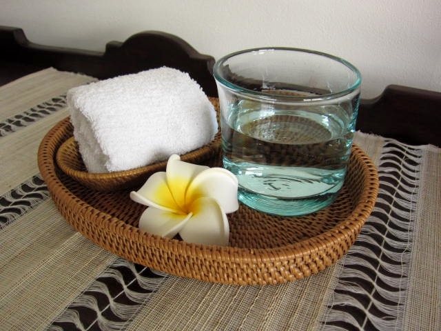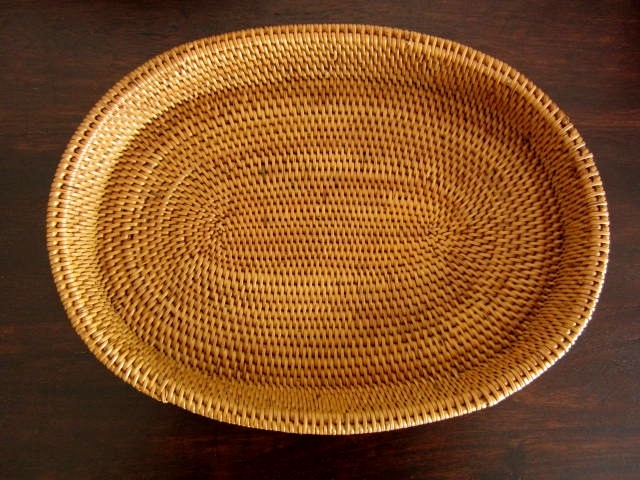 シンプルな平編みの楕円形のおぼん(トレイ)です。