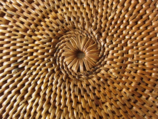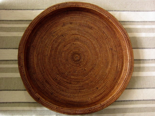 アタできっちり編み込まれた円型のおぼん/ラウンドトレイです。