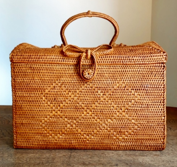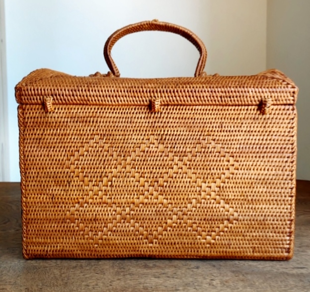 レトロな雰囲気たっぷりの持ち手付きピクニックバスケット兼収納ボックスです。