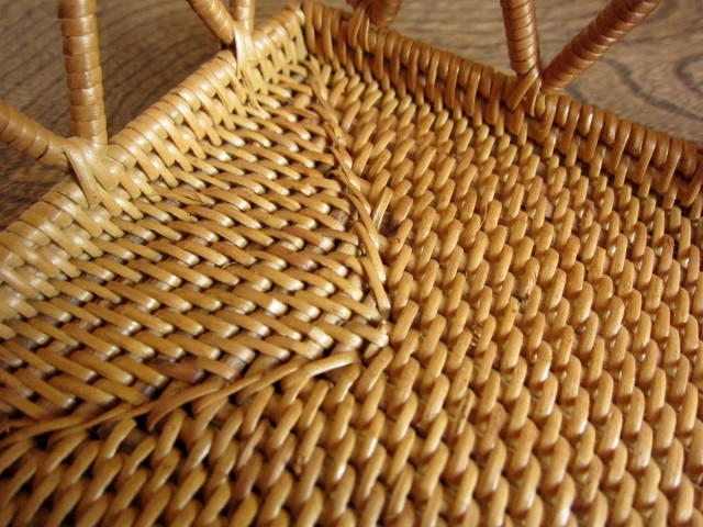 亜熱帯性のシダ科の植物「アタ」の茎を細く割いて細かく編み込み、天日干しとココナッツチップで燻す作業を何日も繰り返してようやく完成するアタ製品。