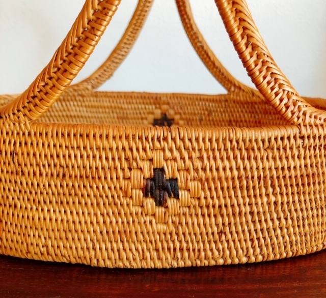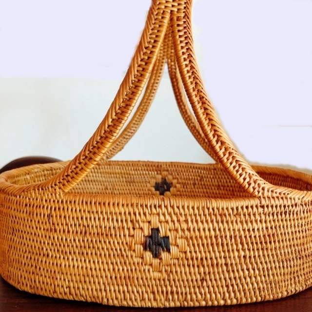 持ち手の付いたアタ製オーバル(楕円形)バスケットです。