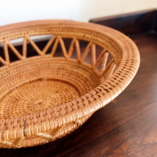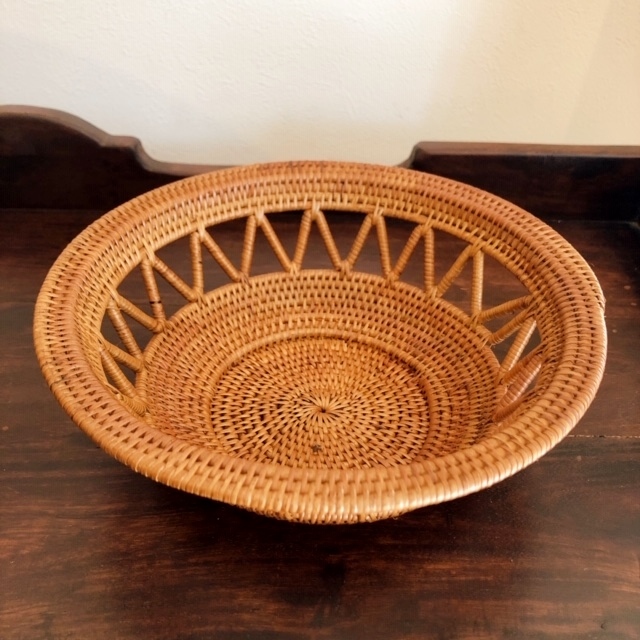 バスケットの周りにぐるりと三角形の透かしが入ったラウンドバスケットです。