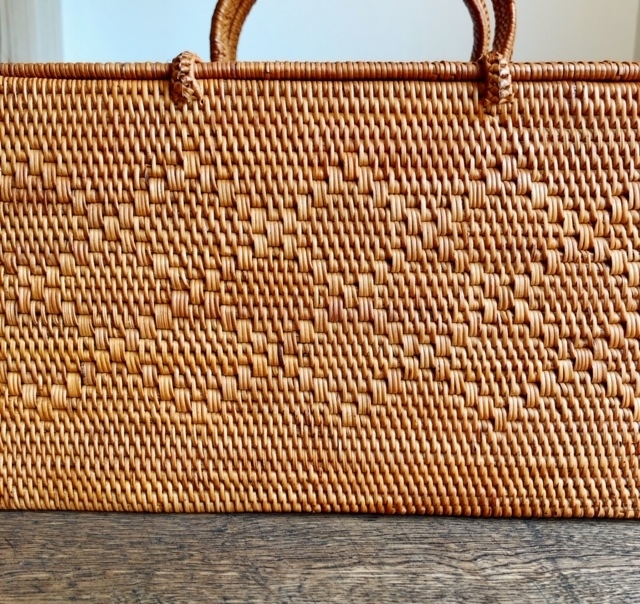 ボックスの側面の菱形模様や観音開きの蓋の仕上がりなど、細く割かれたアタでしっかり、きっちりと編み込まれ、全体的に上品かつレトロな雰囲気を醸し出しています。