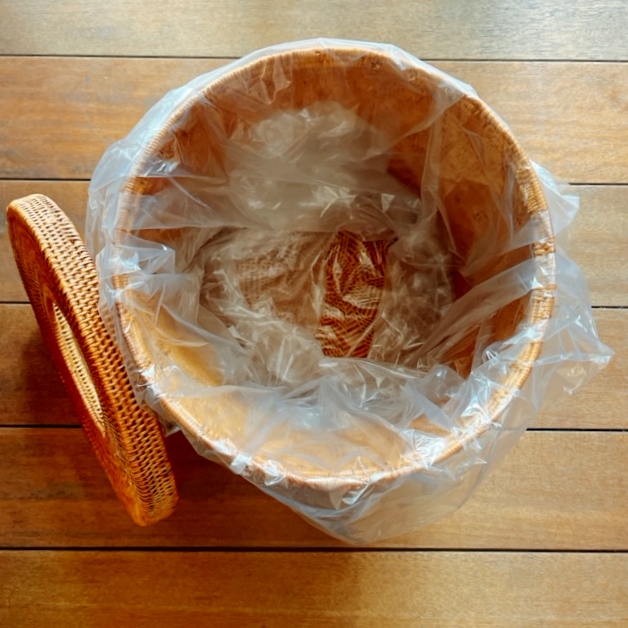 中にビニール袋などを敷いてからふたを閉めれば、アタの編み目に細かい埃やゴミなども入らず、捨てる時もラクです。