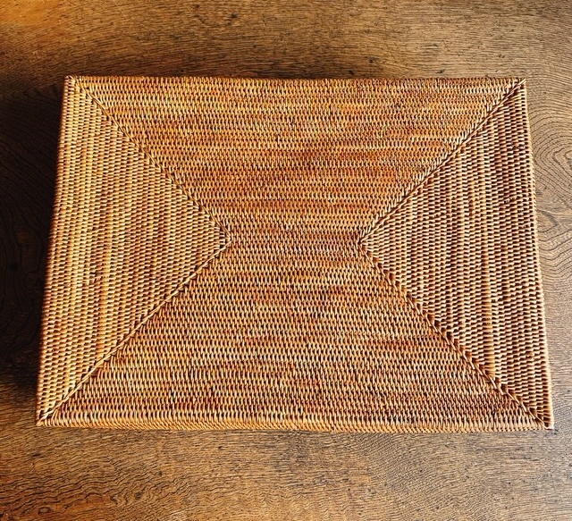 アタ製品は、職人さんがひとつひとつ手で編み込み、天日干しとココナッツ殻のチップで燻される工程を経て作られます。複数の在庫がある商品につきましては、微妙にサイズや燻された後の色の濃さの違い等が見られることがあります。手作り品の特性をご理解、ご了承いただいた上でお買い求めくださいませ。