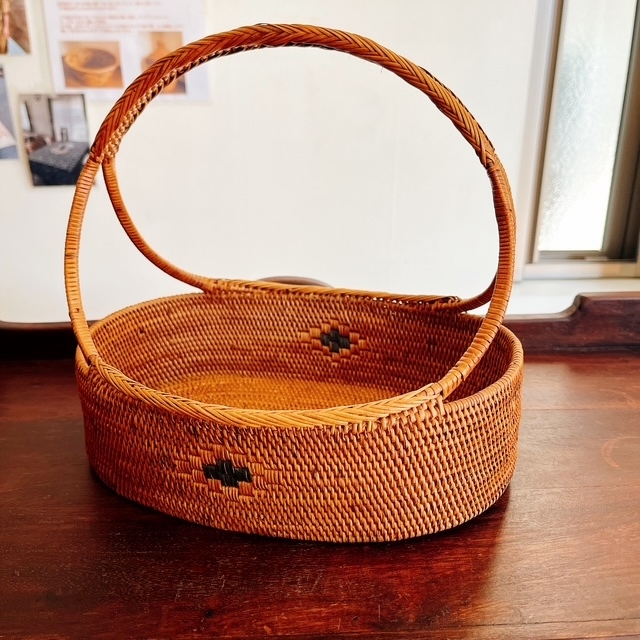 緩やかで優しいアーチ型の持ち手が付いた可愛らしいデザインのオーバル(楕円型)バスケットです。