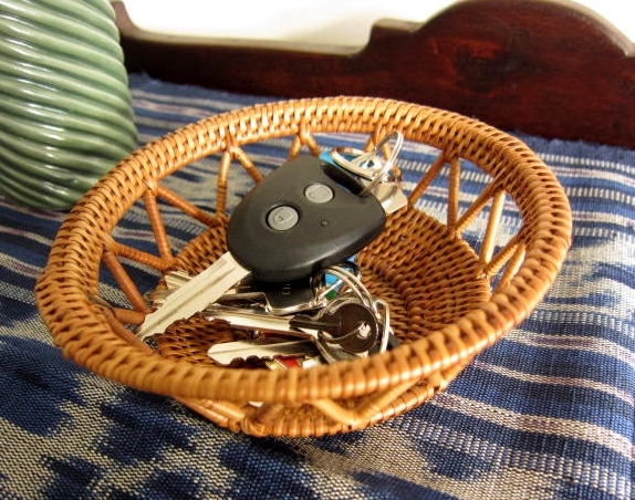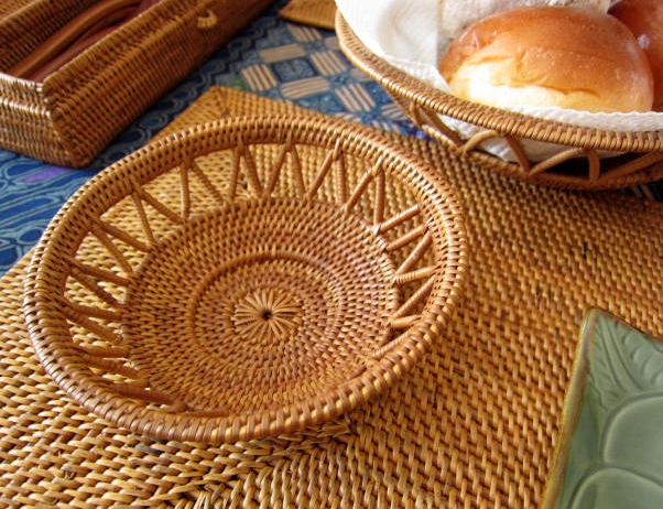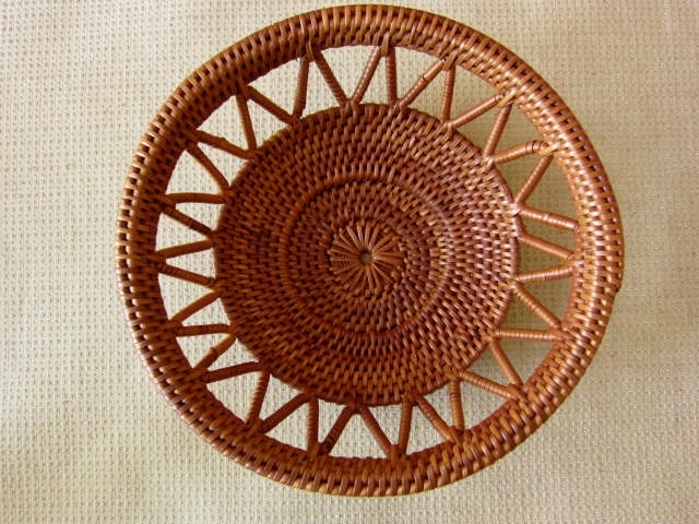 周りにぐるりと三角形の透かしが入ったアタ製ラウンドバスケットです。