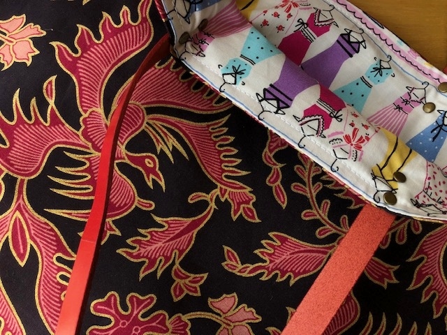 インドネシアのバティックとポップでオシャレなコットンプリントを組み合わせたユニークなトートバッグは、一点モノです!