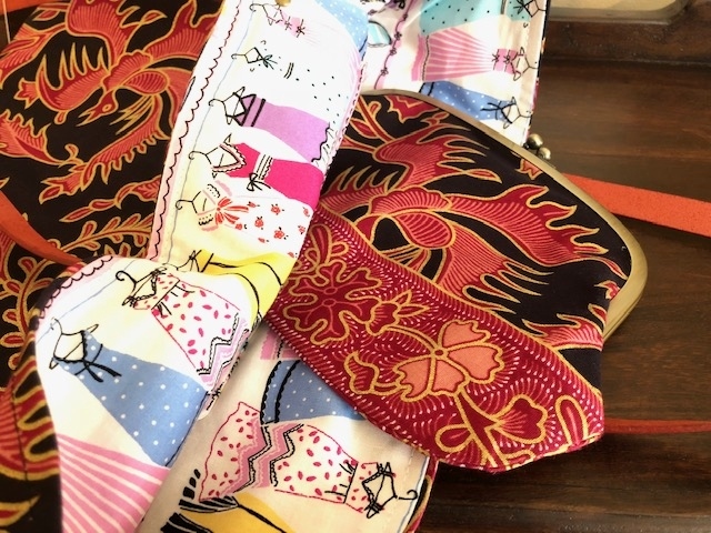 アンティークゴールド色の金具が、エキゾチックなバティックの雰囲気にとよく合っています。