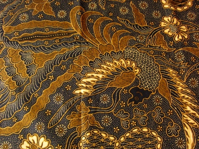 星がきらめく夜空を優雅に極楽鳥が舞う様をイメージさせるデザインのバティック。