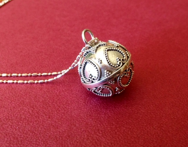 表面にハートの銀細工が施されたガムランボールです。