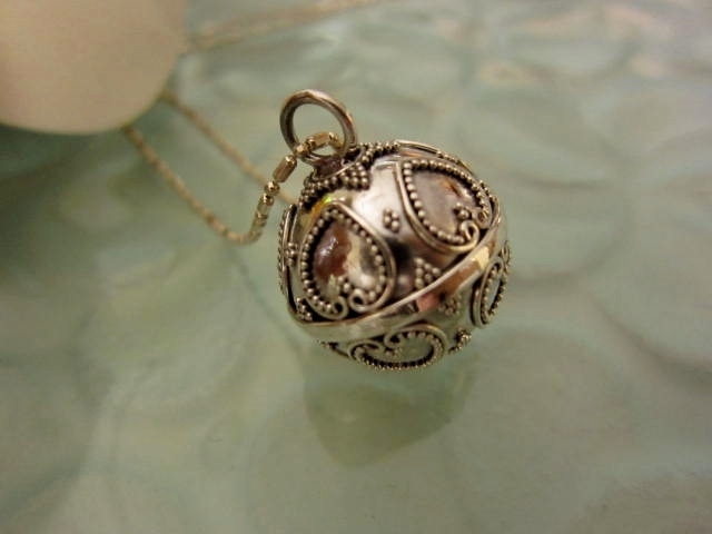 ガムランボールの中には、真鍮の小さな玉がいくつか入っているので、揺れるたびに、ガムランによく似た「シャリーン♪」という神秘的な音色が響きます。