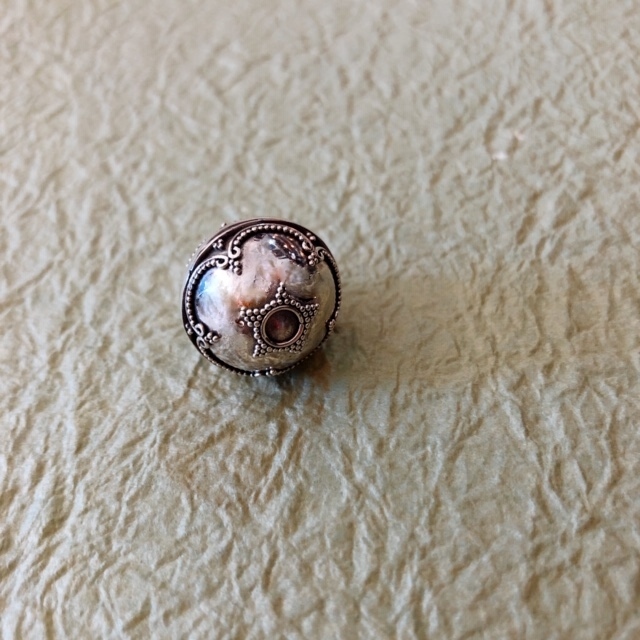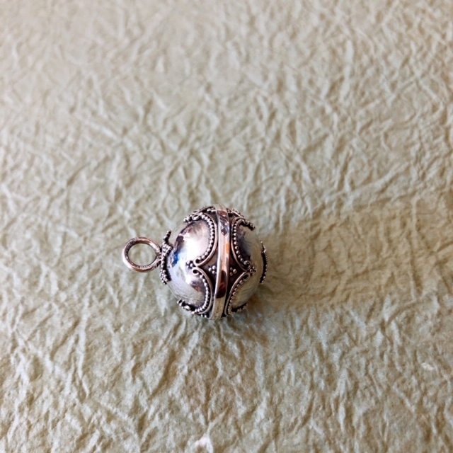 表面に王冠をモチーフにした銀細工が施されたガムランボールです。
