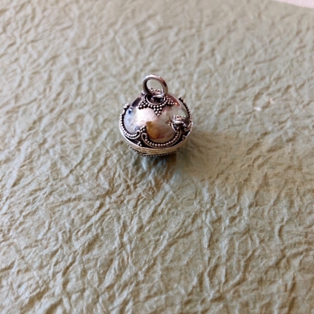 ガムランボールの中には、真鍮の小さな玉がいくつか入っているので、揺れるたびに、ガムランによく似た「シャリーン♪」という神秘的な音色が響きます。