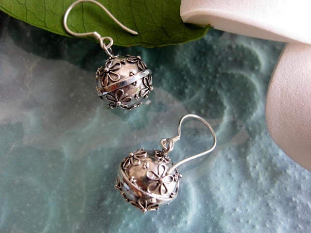 通常のペンダントヘッドのガムランボールよりも小さめサイズですが、バリ島の銀細工専門の職人さんの技で、細い銀線やシルバーの粒を使った細かい細工がきちんと施されていて、とても豪華な逸品です。