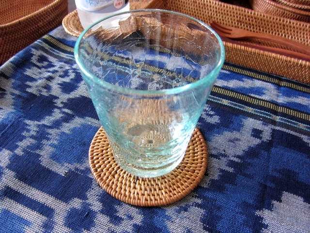 バリ島を訪れた方なら一度は目にするグリーンブルーのバリ・ガラス。