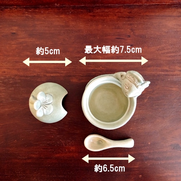 ・サイズ(外寸):最大幅 約7.5cm、蓋の直径 約5cm、スプーンの長さ 約6.5cm、高さ 約8.5cm