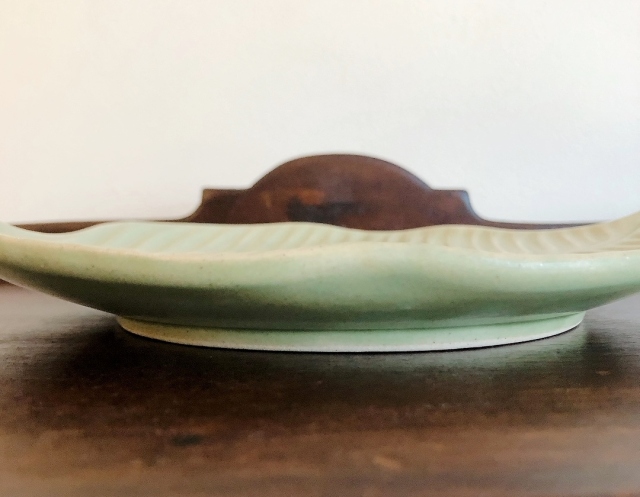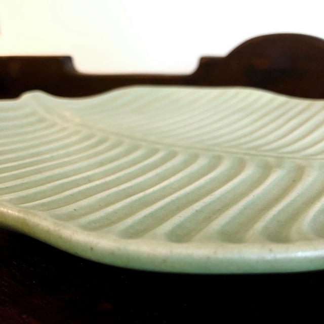 大きな葉っぱの形をしたタバナン焼きのお皿です。